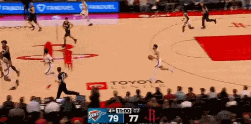 先是谢泼德弧顶三分不进,雷霆马上反击,切特爆扣。