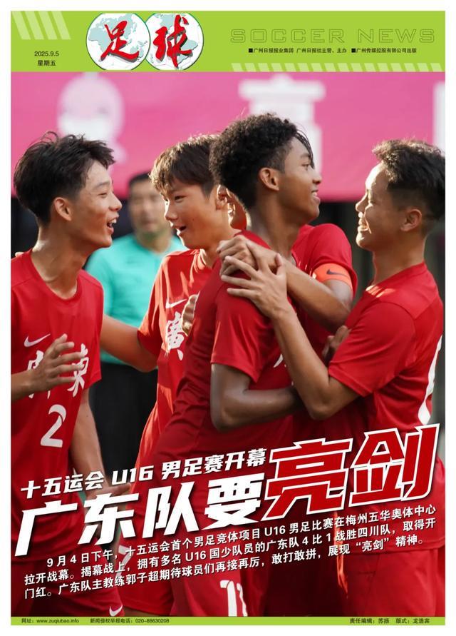 记者王伟报道 9月4日下午,十五运会首个男足竞体项目U16男足比赛(下简称U16男足赛)在梅州五华奥体中心拉开战幕,揭幕战上,拥有多名U16国少队员的广东队4比1战胜四川队,取得开门红。赛后,广东队主教练郭子超表示球员们打得不错,他期待球员们拿出“亮剑”精神,敢打敢拼。